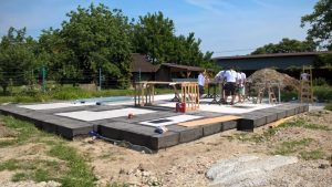 Moderně navržený rodinný domek se třemi odsazenými střešními rovinami s přesahy štítů. Krov řešen příhradovými vazníky. Přesahy vodorovnými panely.